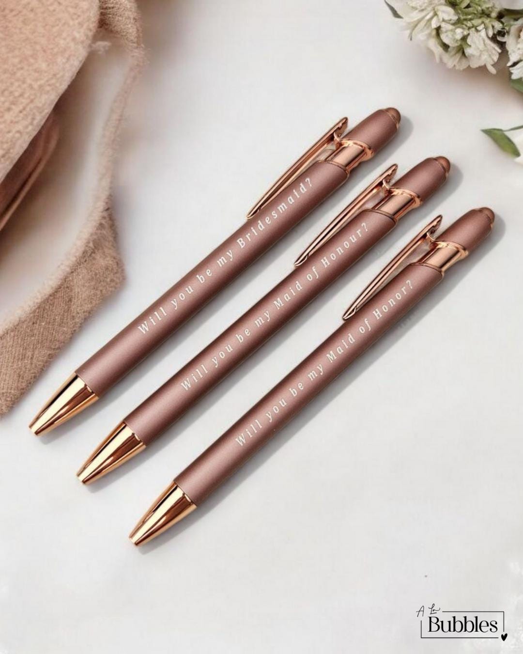 Make the moment unforgettable with this elegant rose gold brushed-aluminium pen — the perfect addition to any bridesmaid proposal box and a keepsake they’ll actually use and love.